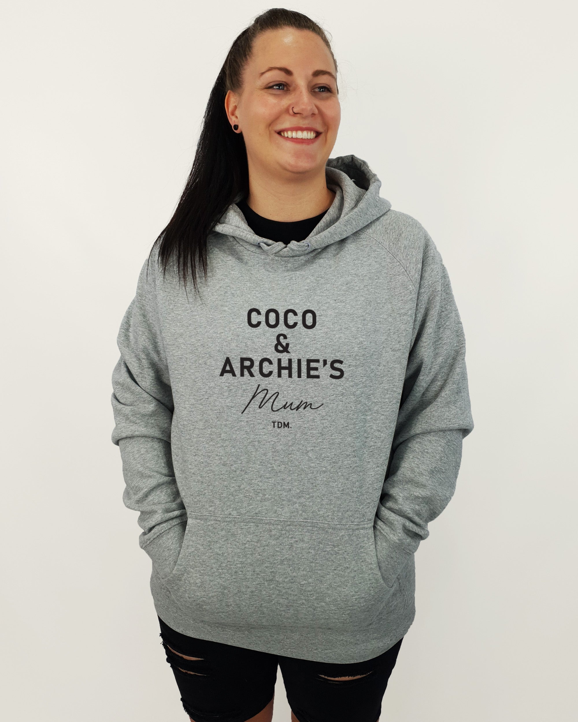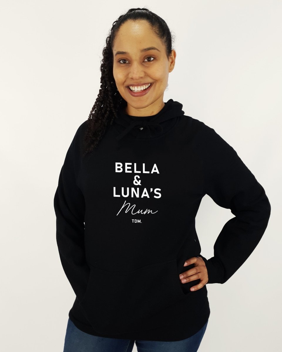 *please note: this is custom printed just for you! Maximum of 8 characters per name. We will add the ampersand (&) and apostrophe. Just fill out the boxes with the two names you would like on your hoodie and we will print them in that order Fur Baby's Name & Fur Baby's Name #2 e.g. for 'Bella', 'Oscar' we will print "Bella & Oscar's Mum"